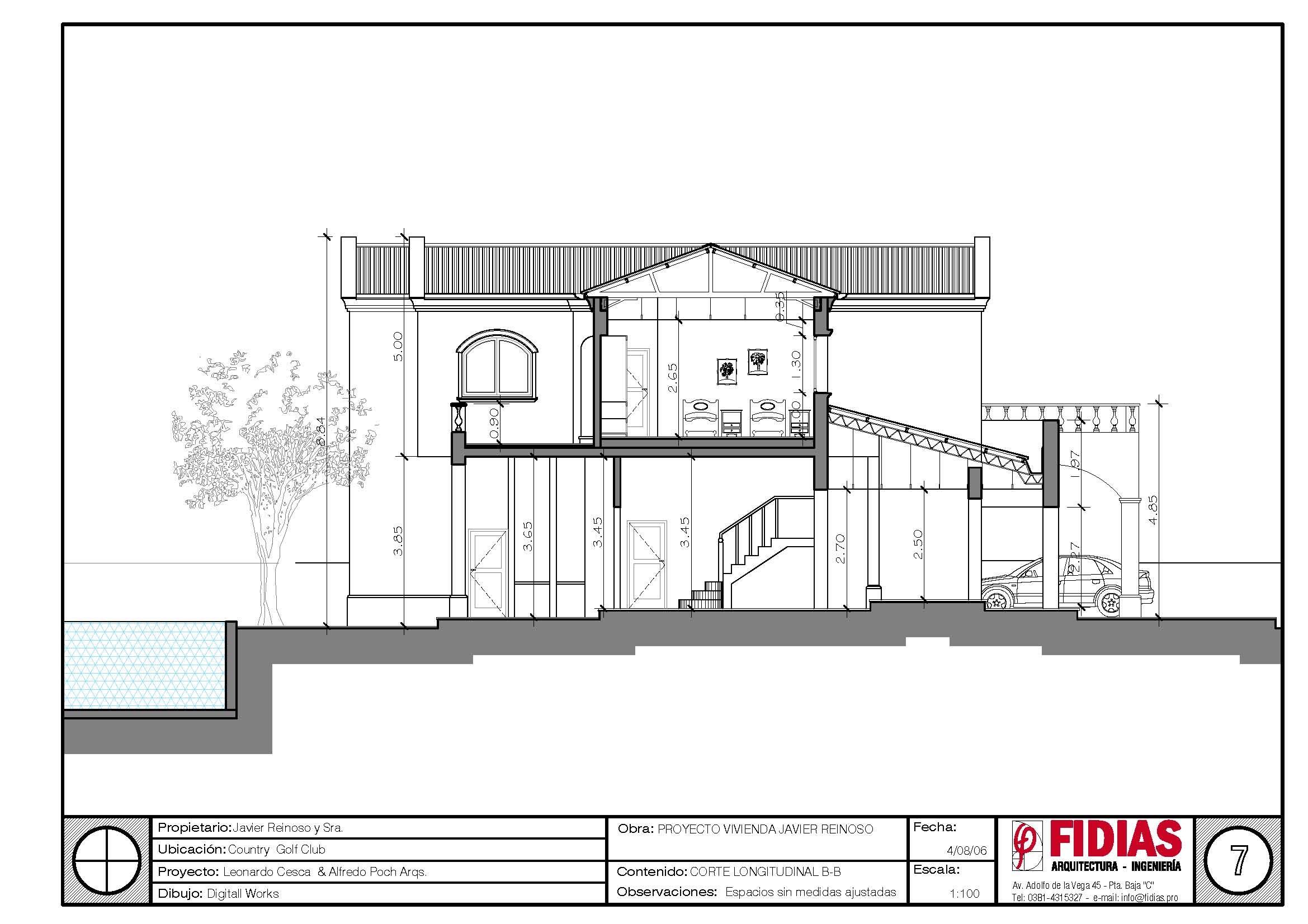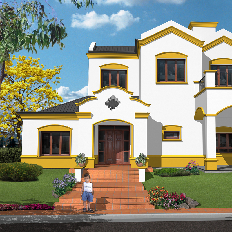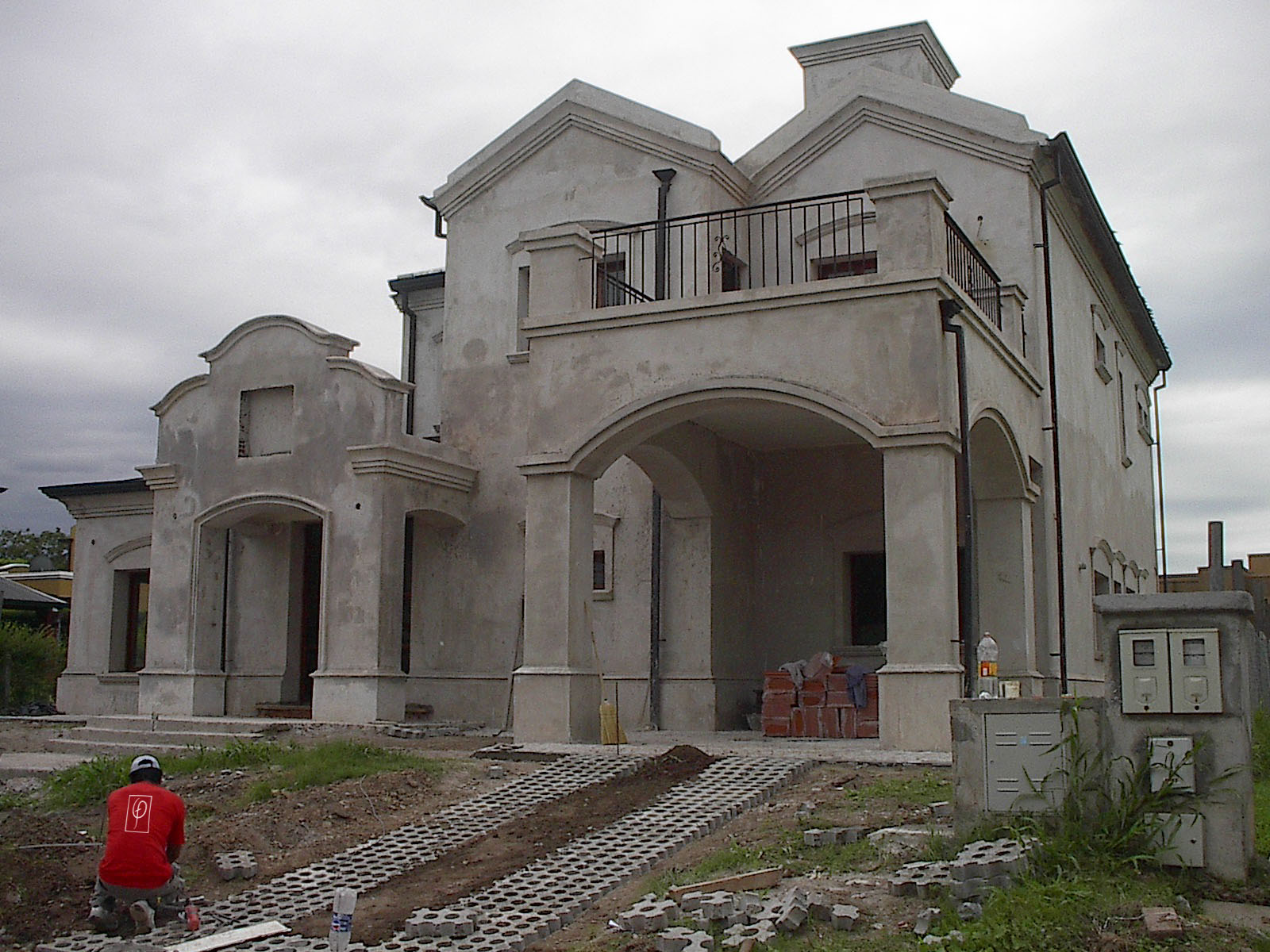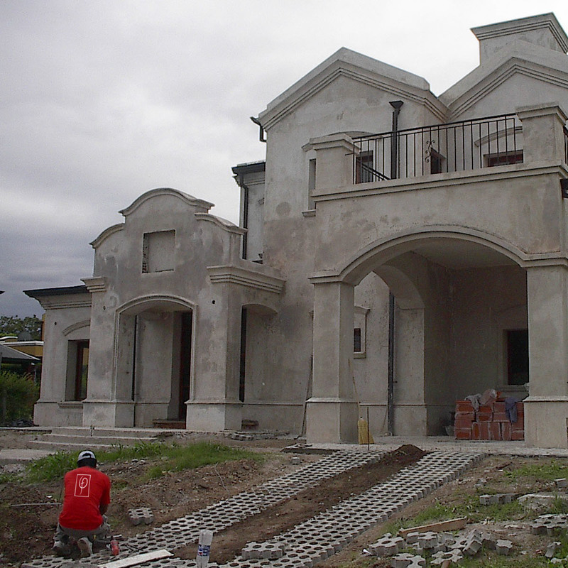 Es una casa de estilo colonial español clásico, a pedido del cliente, con un juego de volúmenes característico. Detrás de la cubierta en pendiente se oculta un pasillo técnico que sirve para la limpieza de canales de desagüe pluvial y para alojar los equipos de aire acondicionado con un acceso fácil para su mantenimiento.