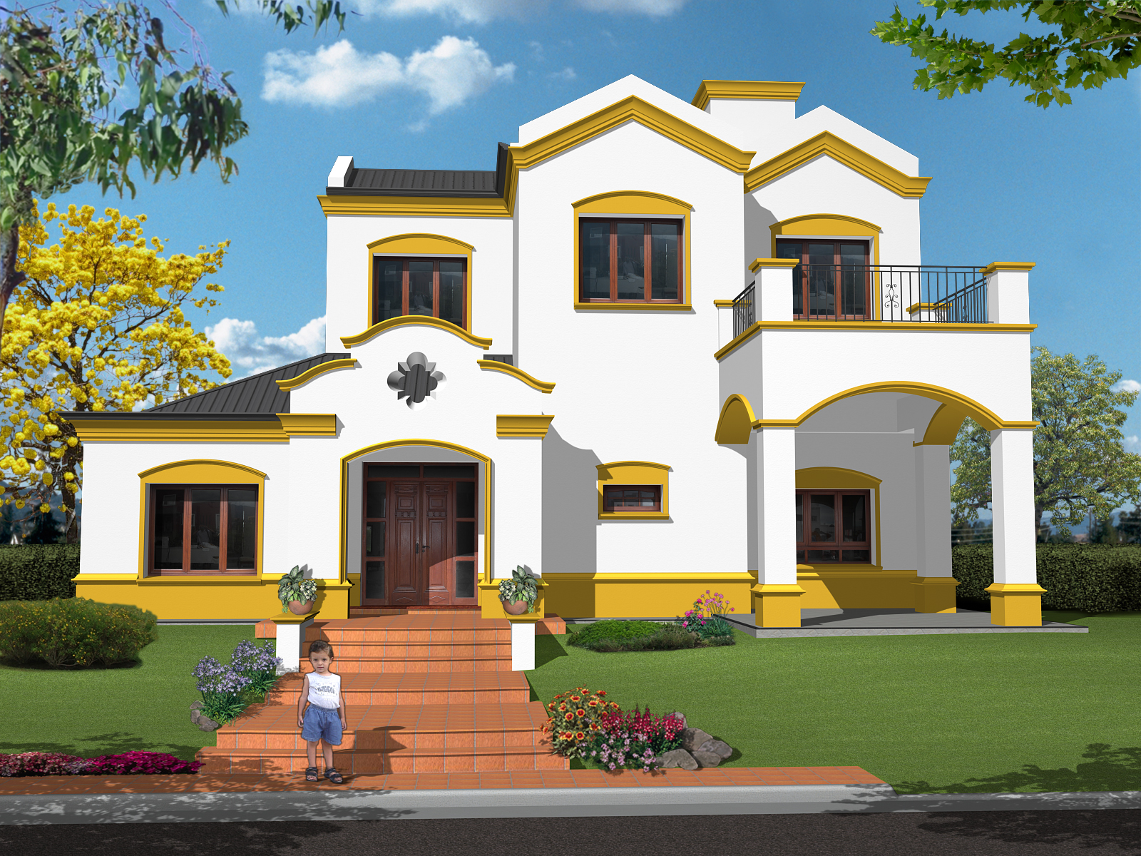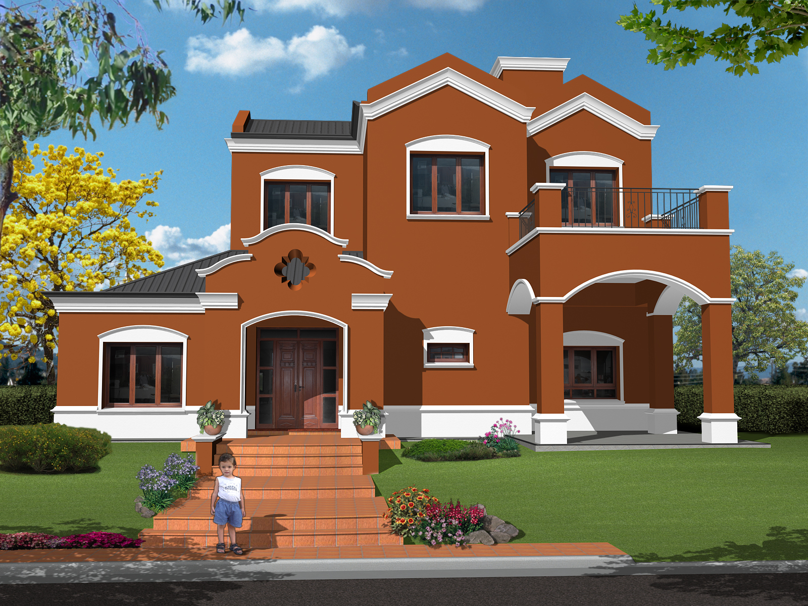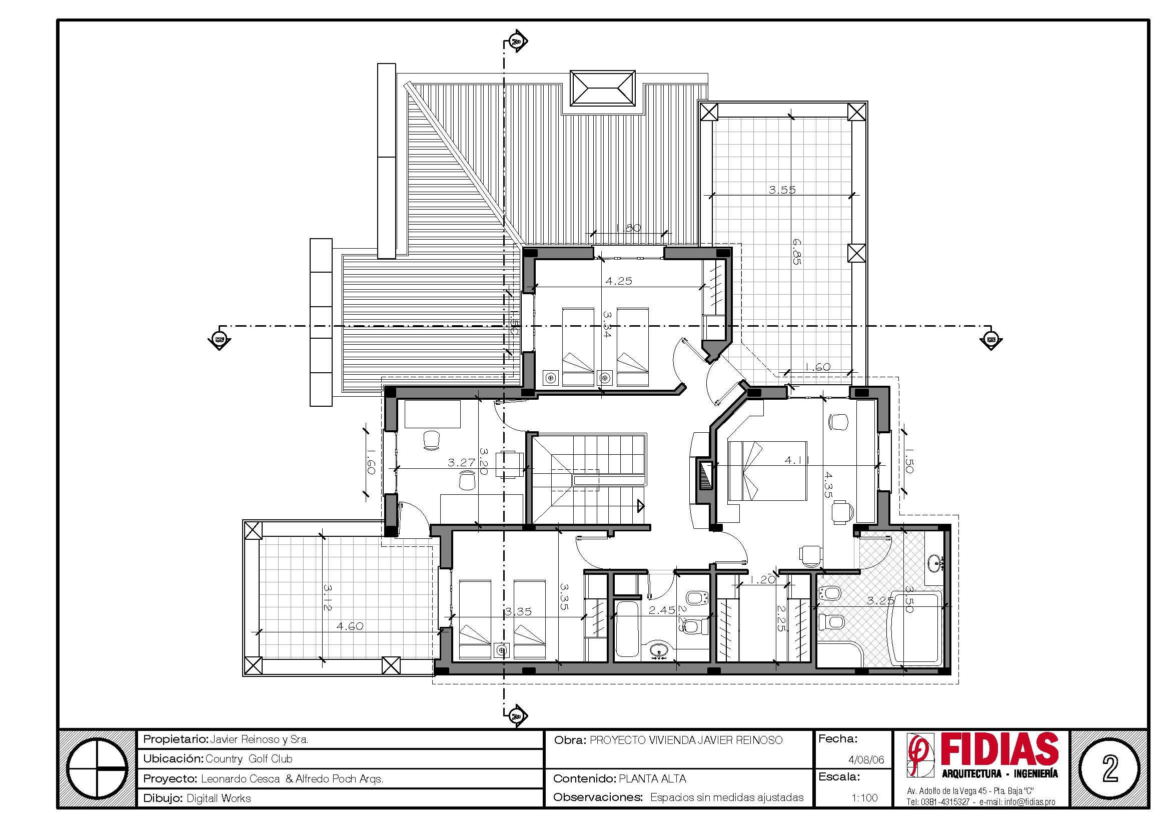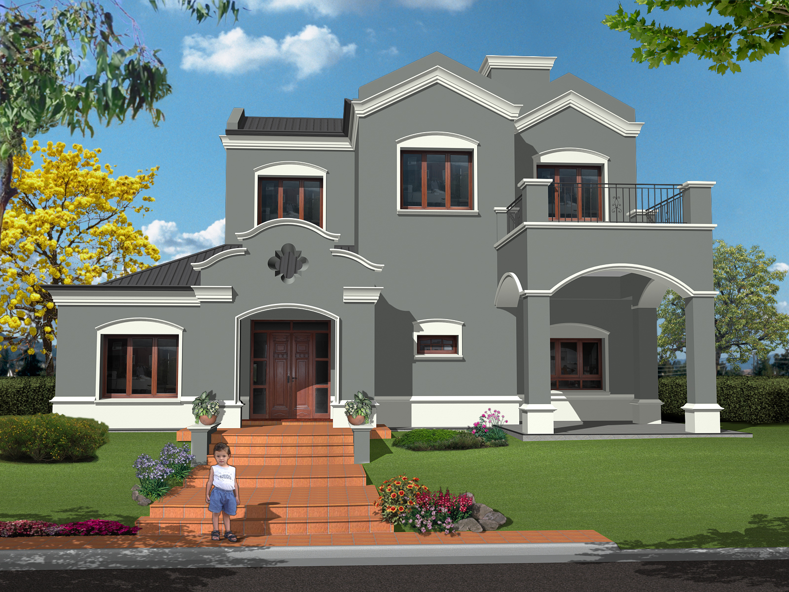 Es una casa de estilo colonial español clásico, a pedido del cliente, con un juego de volúmenes característico. Detrás de la cubierta en pendiente se oculta un pasillo técnico que sirve para la limpieza de canales de desagüe pluvial y para alojar los equipos de aire acondicionado con un acceso fácil para su mantenimiento.